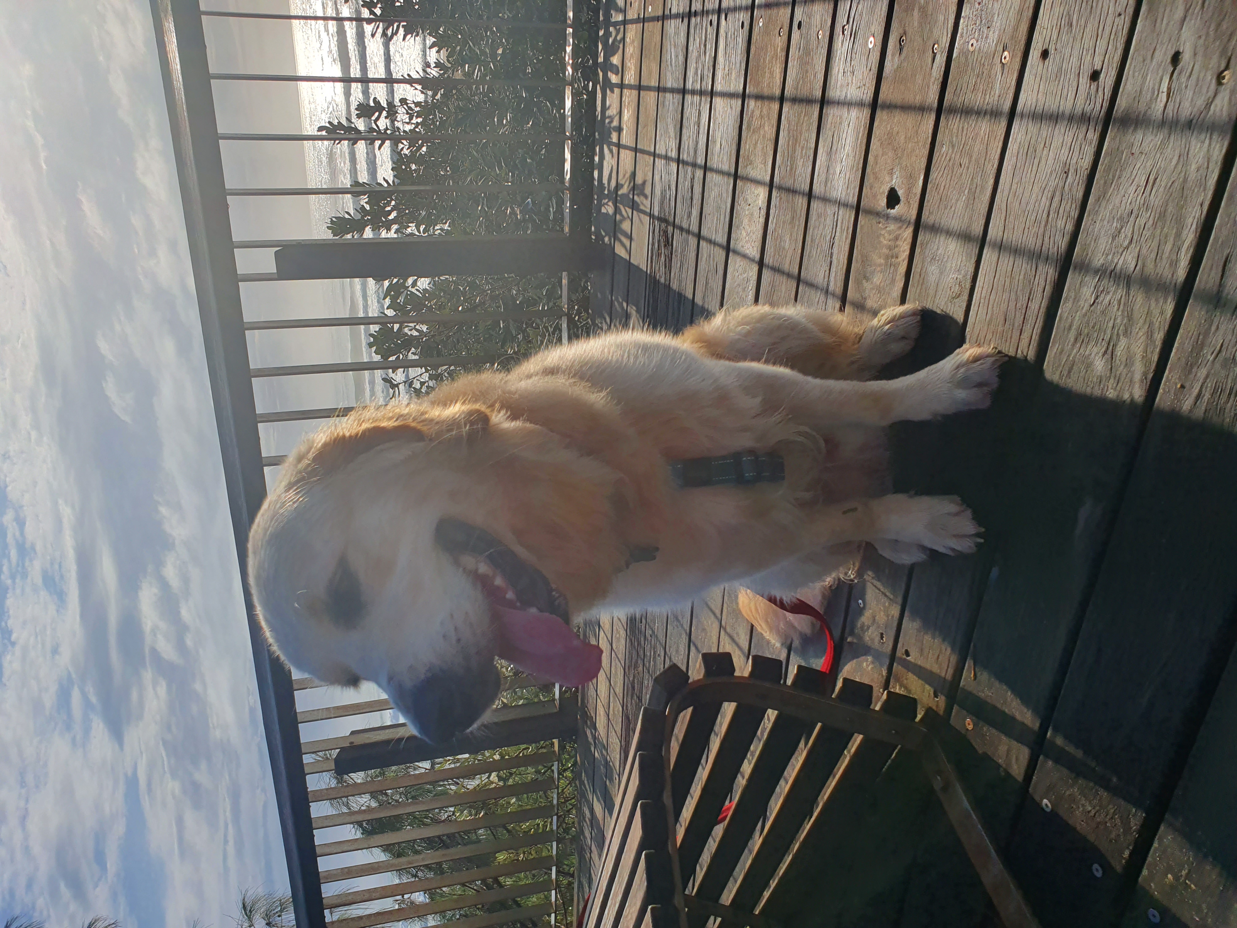 I’m a Cuddly Golden Retriever who loves going for a walk and spending time with my family. I live with my annoying sister who is a Golden Labradoodle.