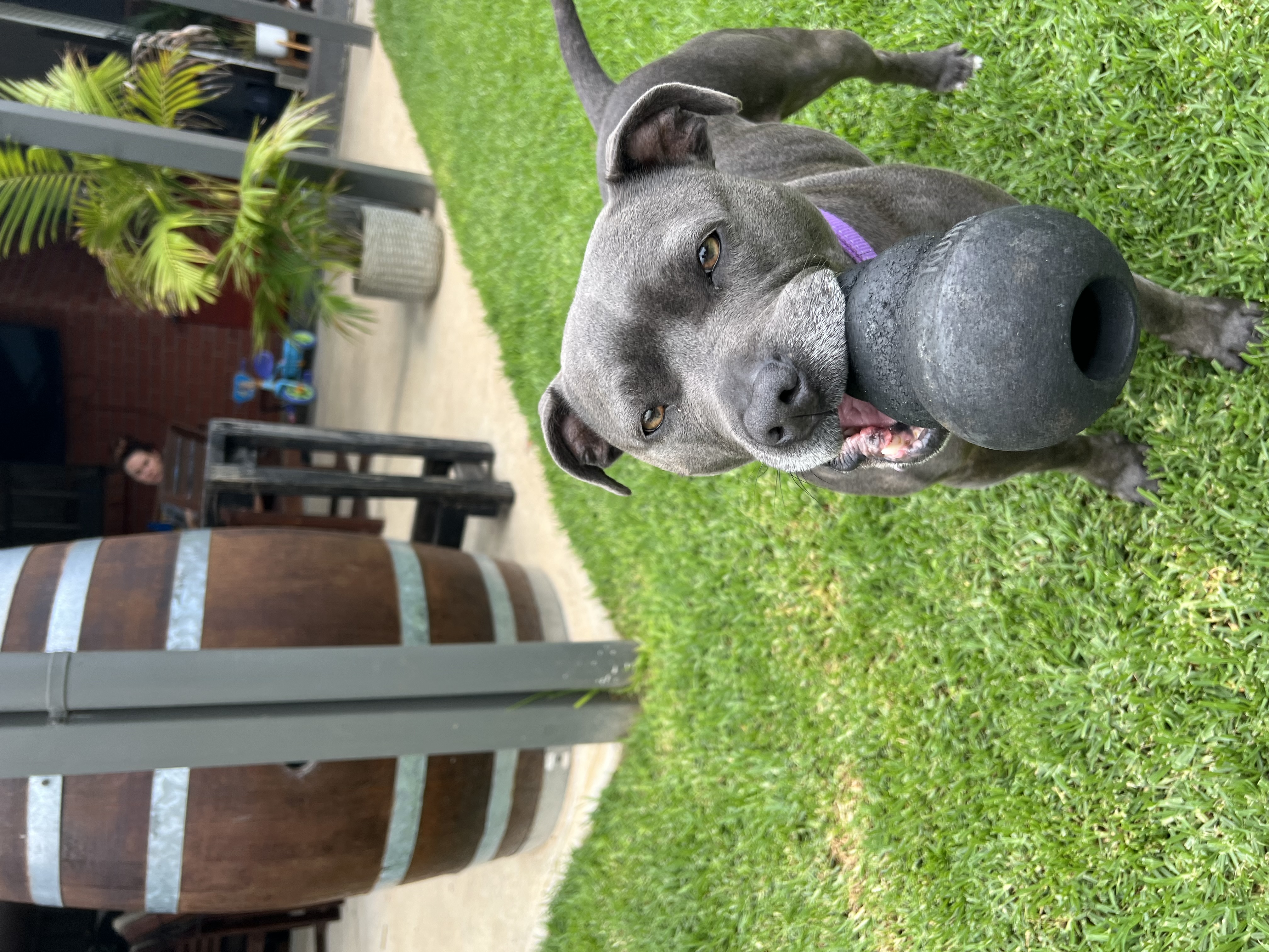 I’m a loud big ball of muscle and I love playing with kids big and small. I can be a bit much at times and get a bit excited when meeting new people.