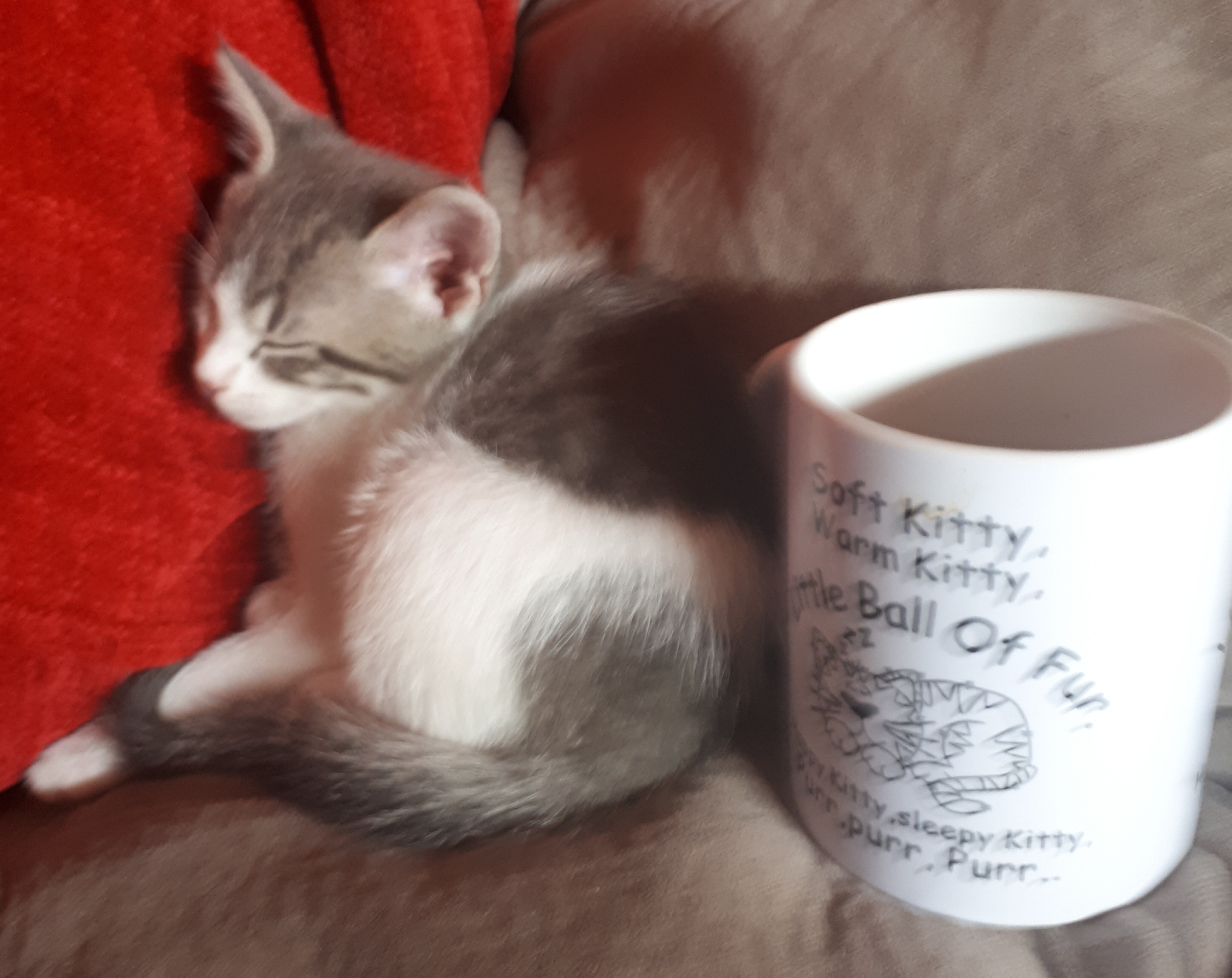 I was hand raised by foster carers and at 150 grams, I was the smallest of my litter of five. I crashed twice in the first week but my foster mummy pulled me through. When we reached 12 weeks and weighed 1kg or more, we were desexed, microchipped, given our first vaccination and flea and worm treated. I developed a very strong bond with my foster daddy, so they adopted me. I am now five years old and unfortunately have to share my parents and house with another cat. Pfft.
