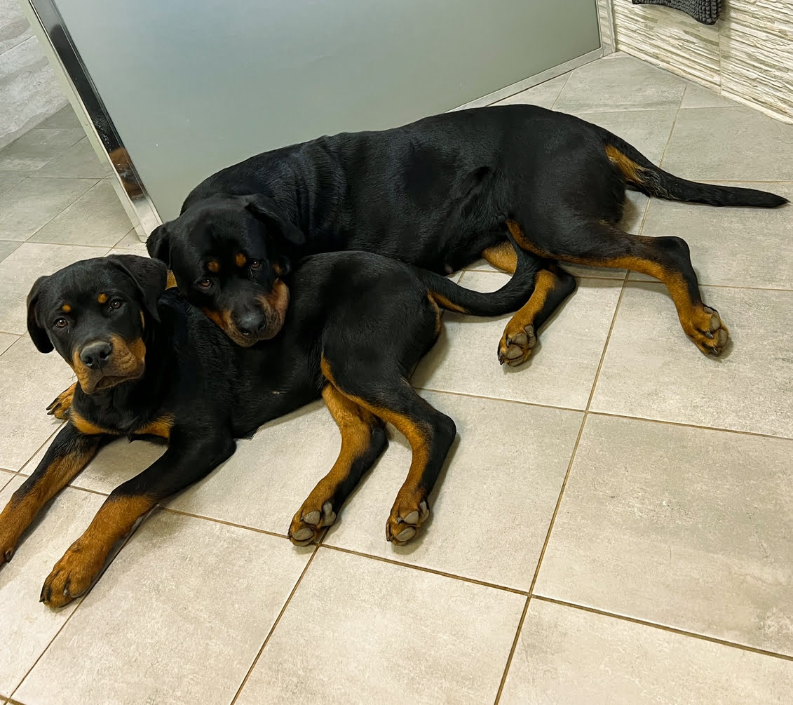I’m a 5 year old rottie that love and adores her family but sometimes enjoys barking back at the neighbours dogs 😅 I have kovu (another rottie which is a male) who I enjoy playing with