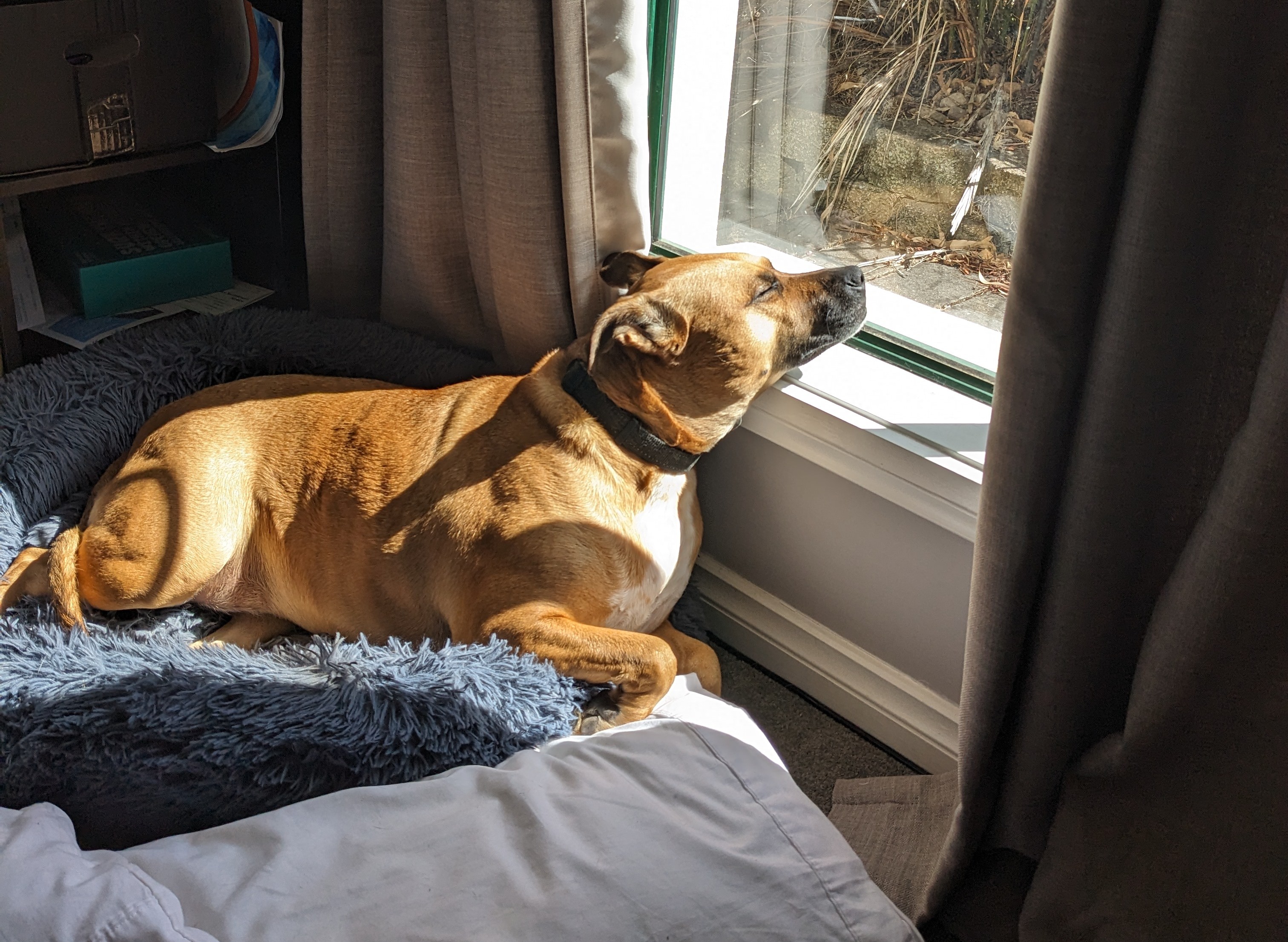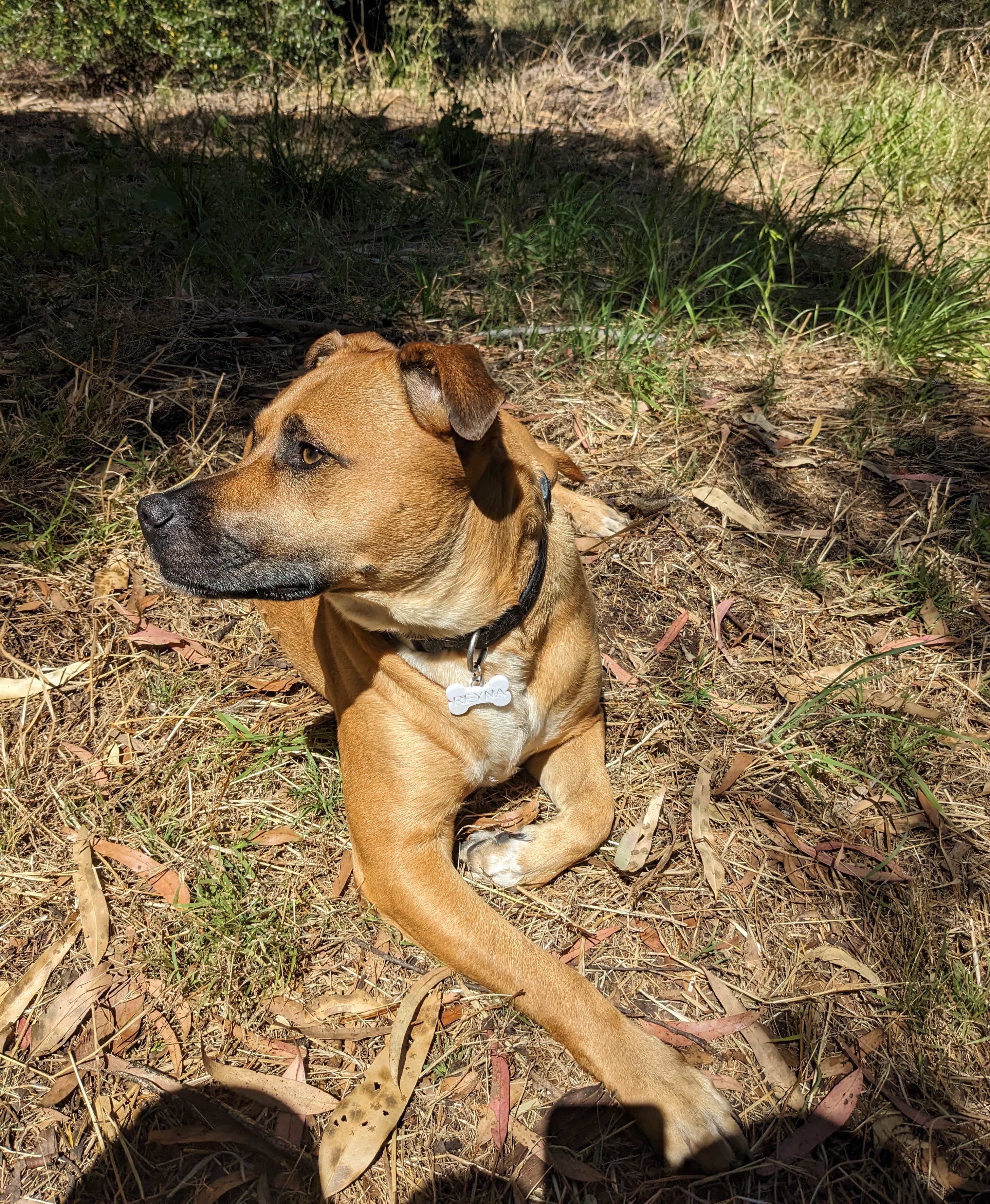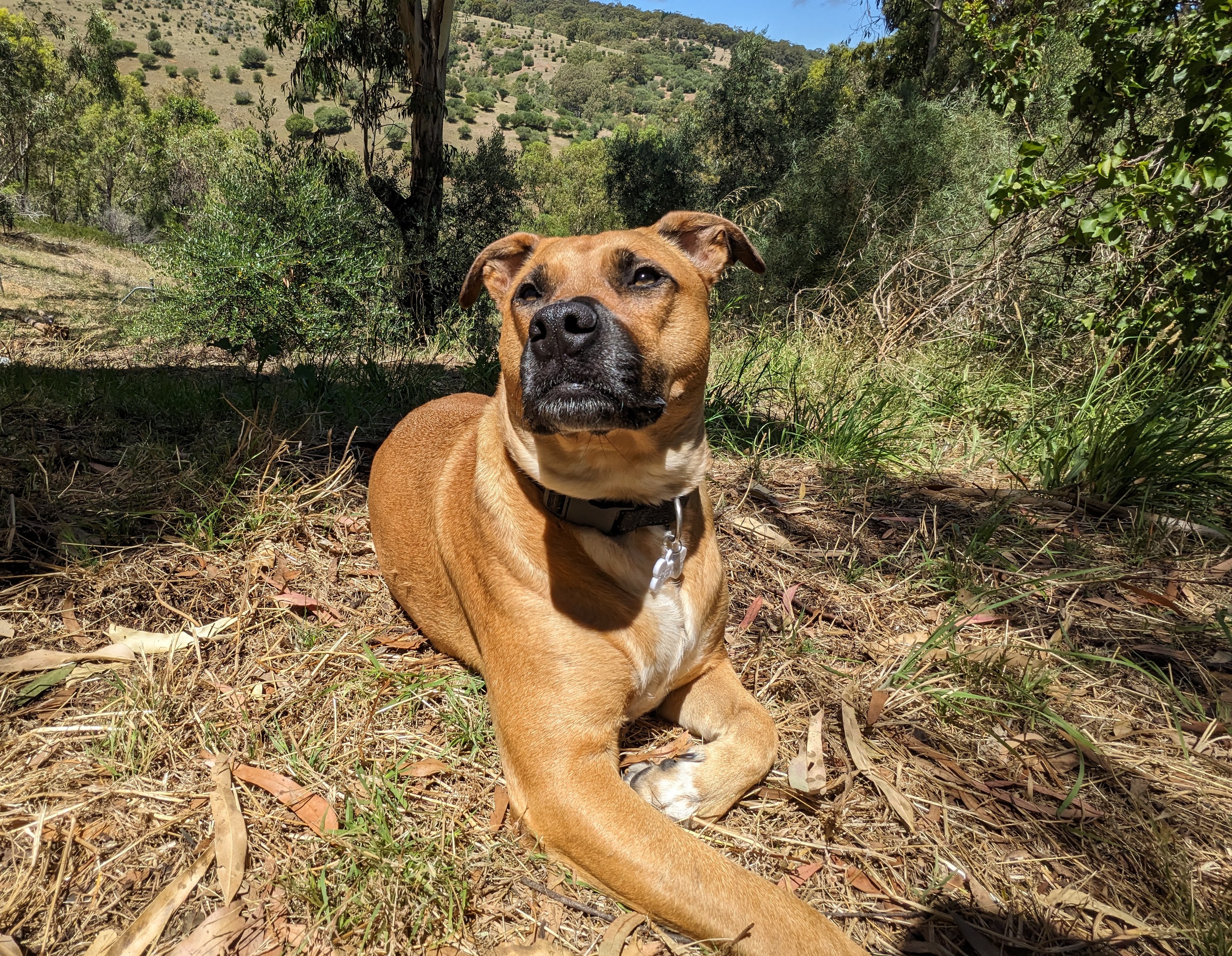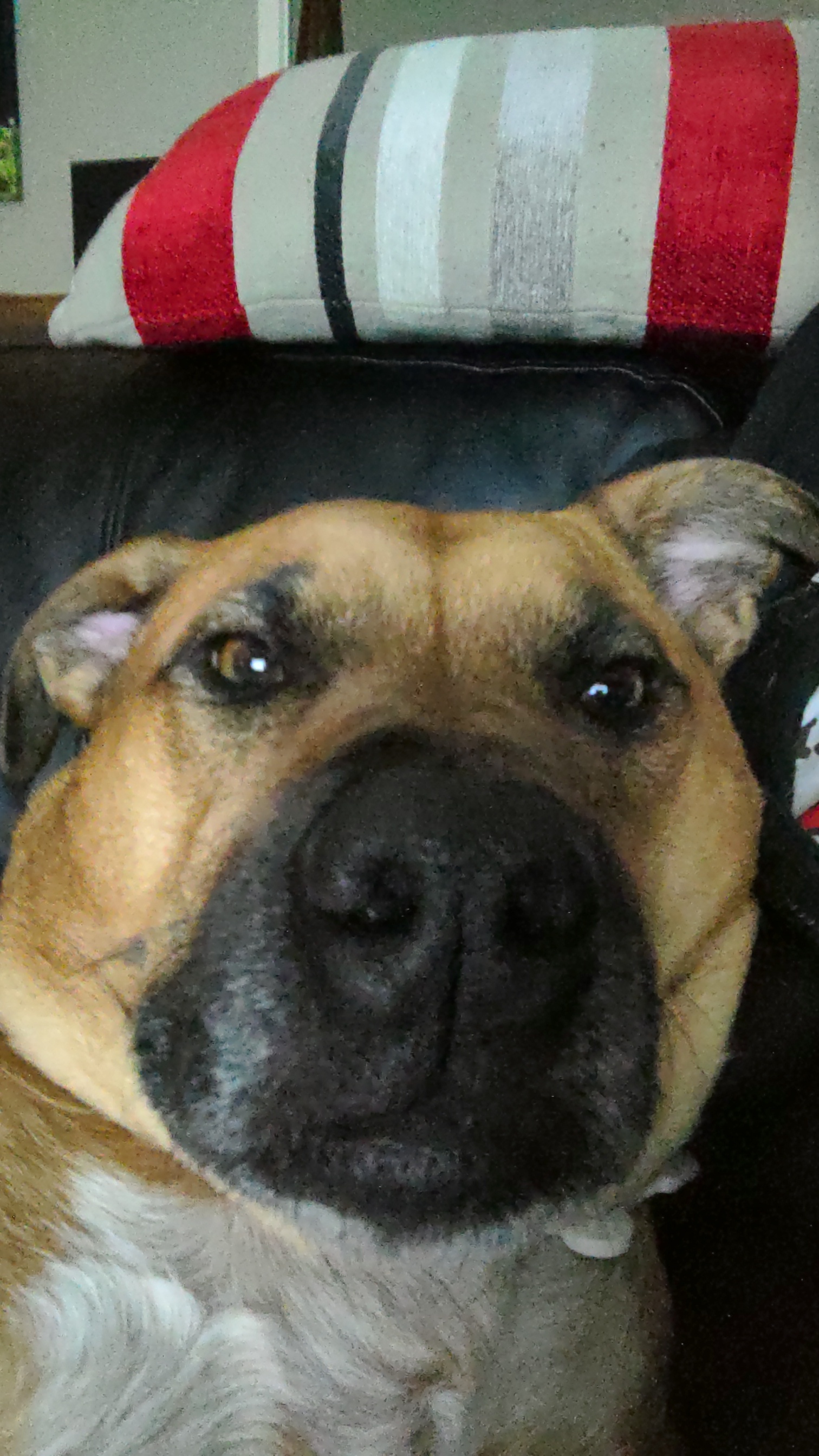 I’m a 4yr old female AmStaff X Huntaway who’s very loving and affectionate with other dogs and especially their humans, I love attention and always keen to play until we’re all tuckered out. I can get jealous and crave a particular dog’s attention when lots of other dogs around. I’m not a fan of cats.